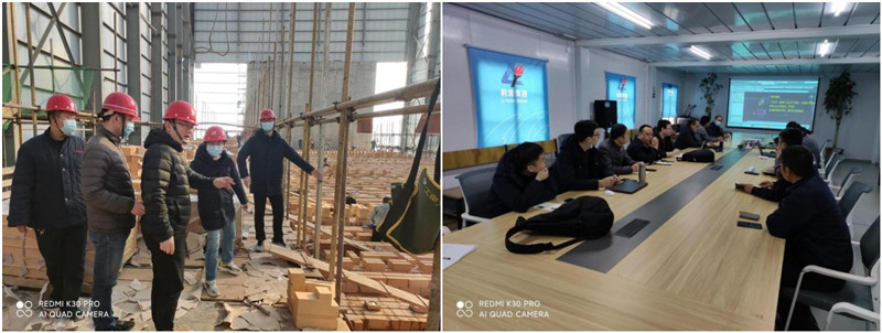 220日,河南利源新能科技有限公司128萬噸年焦化及煤氣綜合利用項目 1#焦爐砌筑正式開工。為保證更好的服務業主,公司派出駐場人員現場服務,同時馬俊生、陳淼兩位副部長于227日帶領設計團隊親赴現場,對焦爐的砌筑、化產回收裝置的施工提供了技術指導。晚上,在項目部進行技術交底,對業主提出的問題一一解答。