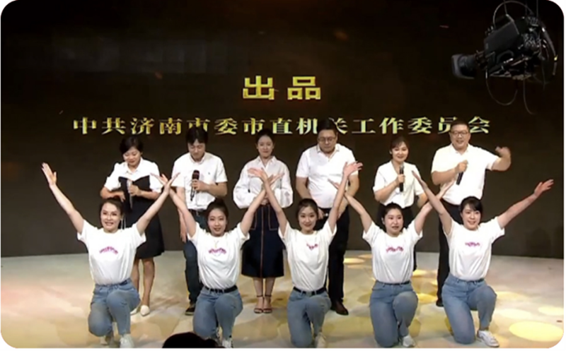 活動的開場演出節目——歌舞《我們都是追夢人》,是由山冶設計代表隊的5名耀華公司舞蹈演員(左起:趙云;劉佳瑋;張培惠;王佳穎;劉海燕)與市委市直機關工委、市委黨校、濟南出版有限公司、市政府資金結算中心的6名歌唱演員聯合出演,催人奮進的勵志歌詞,渾厚悠揚的甜美歌聲,火辣、動感、青春的曼妙舞姿,頃刻間打開了每位觀眾的心扉,讓人心潮澎湃,斗志昂揚,情禁不抑。該節目獲得了本次演出活動的“優秀組織獎”。