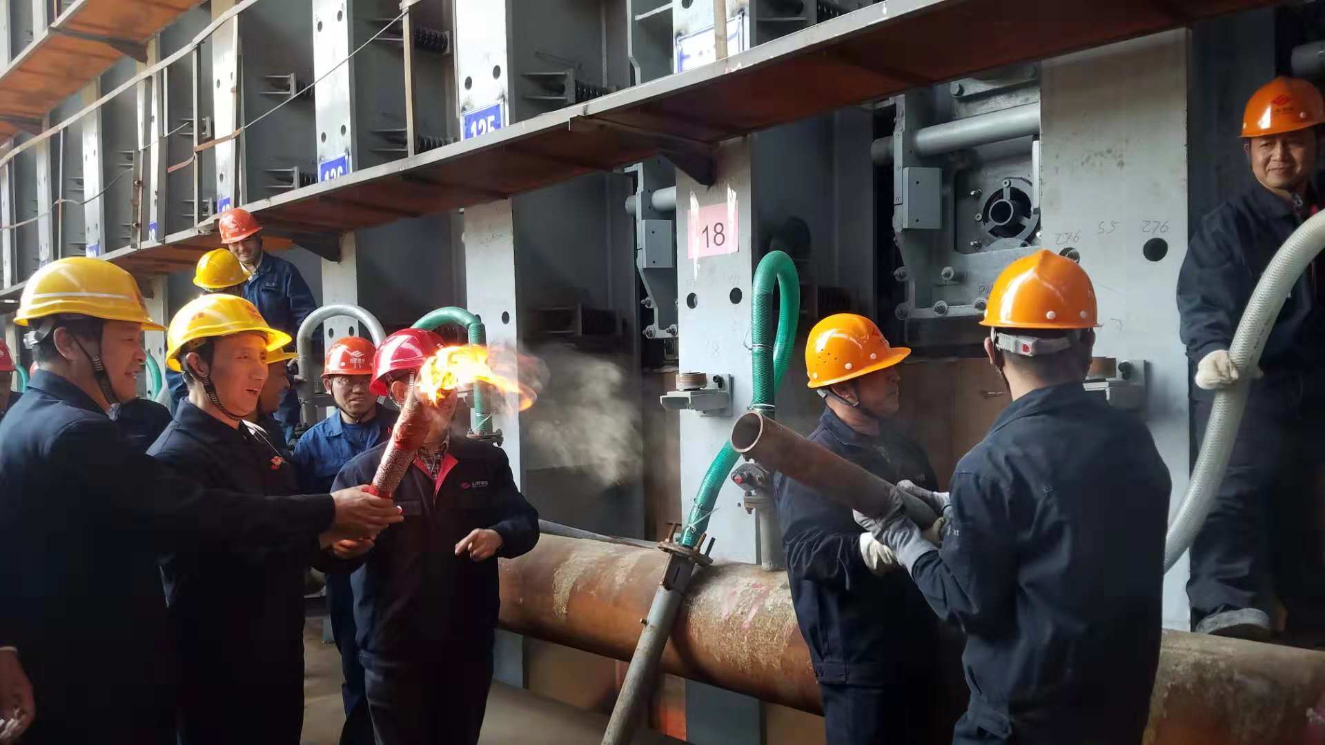 山冶設計副總經理劉洪亮、日照公司焦化項目部部長陳昌華出席并發表熱情洋溢的講話。10點58分,3#焦爐點火烘爐成功,日照精品基地一期二步第一個關鍵節點順利完成!