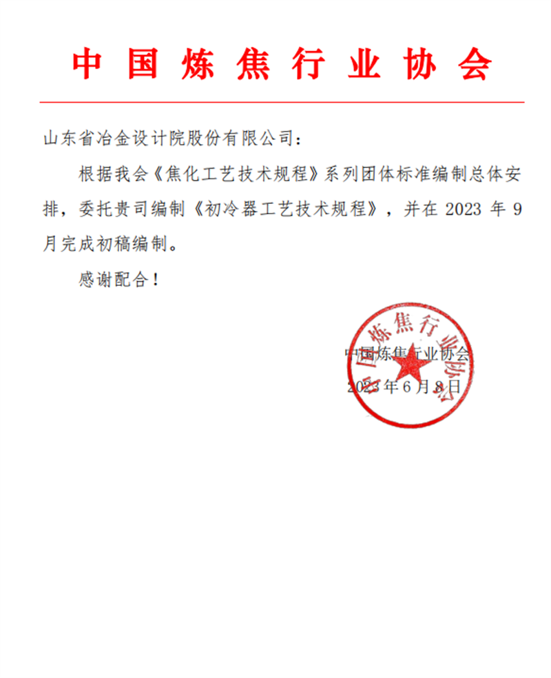 6月8日,我公司收到中國煉焦行業(yè)協(xié)會(huì)(以下簡稱“中焦協(xié)”)下達(dá)《焦化工藝技術(shù)規(guī)程》系列團(tuán)體標(biāo)準(zhǔn)編制總體安排的通知,委托我公司化工事業(yè)部起草《初冷器工藝技術(shù)規(guī)程》。